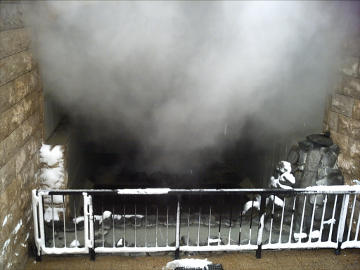 温泉街の一角に間欠泉のある公園があるのですが、いつ噴出すのか不明。。。