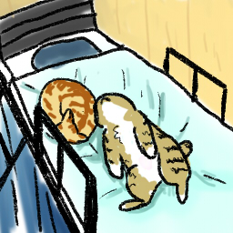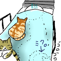タロとチャムは私のベットの上で一緒に寝ているのですが、