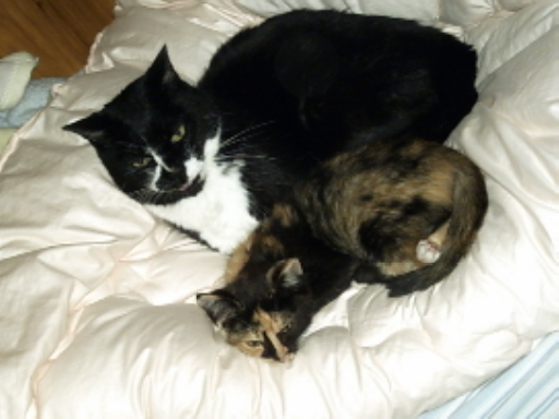 どうやらミクさんはポン太を母親だと認識した様です。相変わらずポン太は嫌がっていますが、お昼寝(というより夕寝)はなんとミクと一緒に!!
