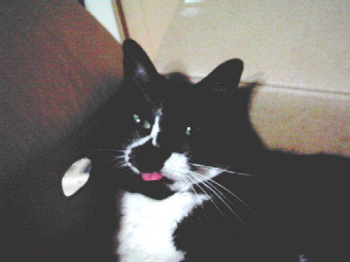 死んだフリをしている寝ているのでカメラを構えたら、目を覚まして「あっかんベー」。