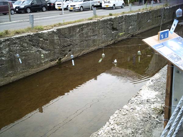 その道の真ん中を流れる川にはたくさんの風鈴が掛けられていました。