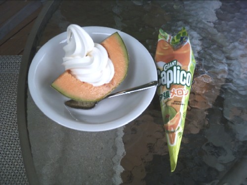 隣にあるのは夕張メロン味のジャイアントカプリコ(おみやげ)。