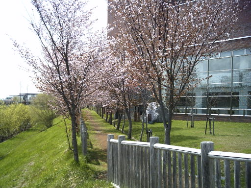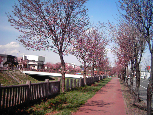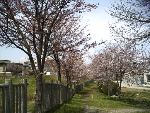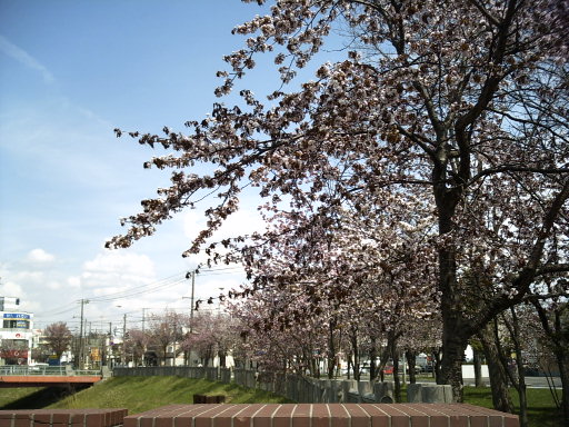 その公園を出て市街方面と国道を結ぶ道路にある桜並木が割とキレイです。