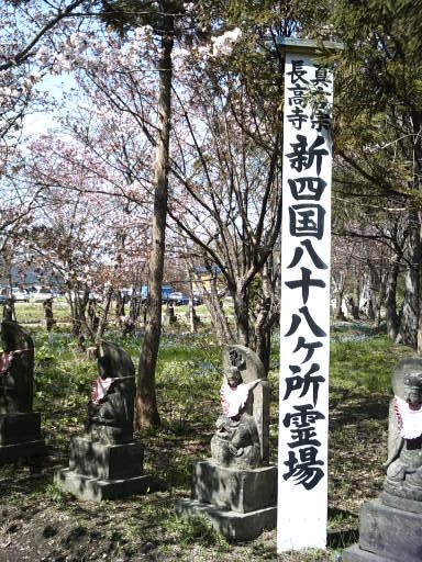 この場所、少々見づらいかもしれませんが地蔵がずらっと並んでいて、なんか薄気味の悪く感じました。桜を見やすくするために写真を加工して明るく見えますが、実際は薄暗くどんよりしたところです。